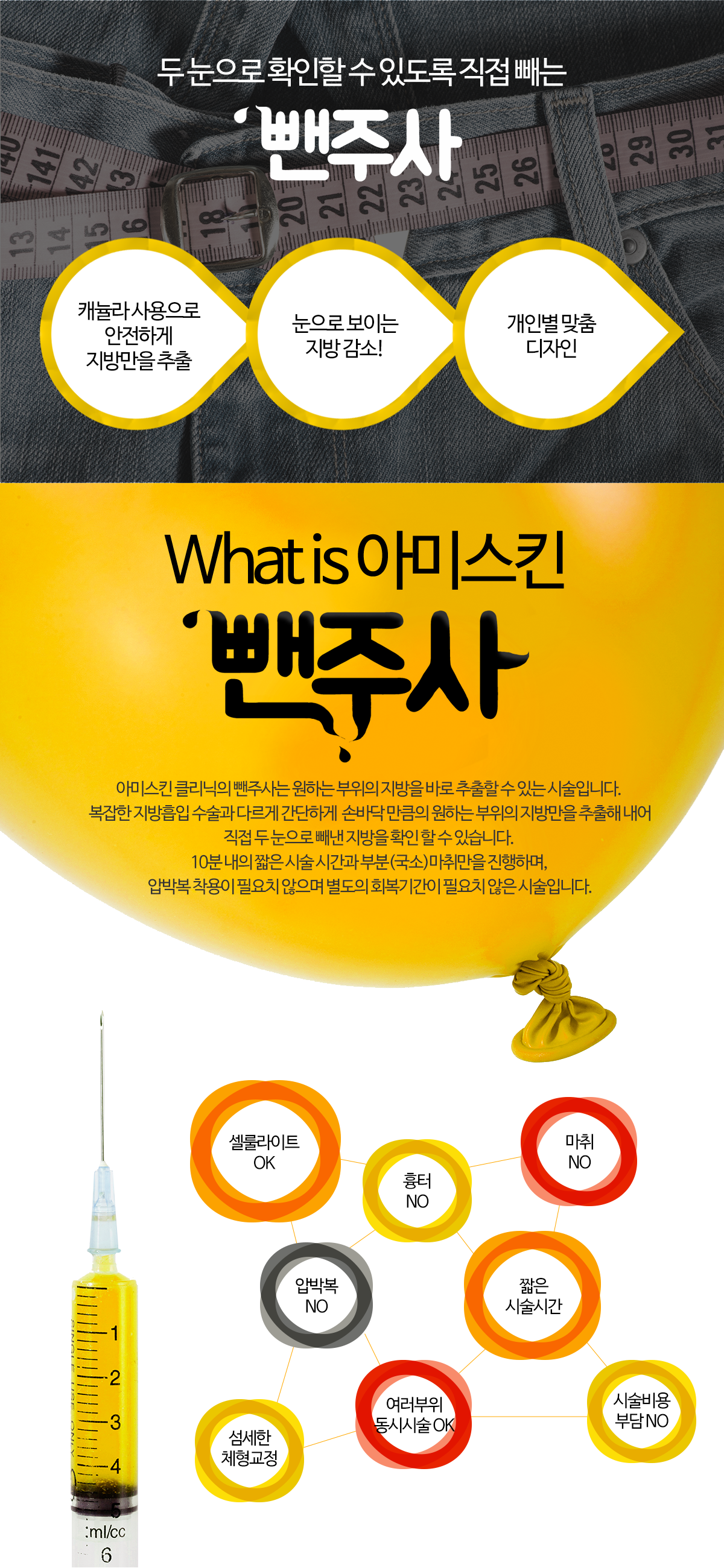 아미스킨 클리닉의 뺀주사는 원하는 부위의 지방을 바로 추출할 수 있는 시술입니다.
